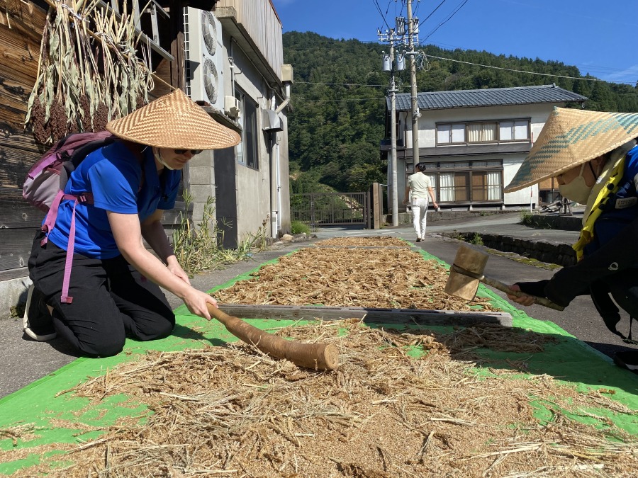 Experience daily life and traditional work in Okuyama ★ Visit the Hakusanroku Folk Museum ★ Try natural dyeing called Obaru-zome. The hand-dyed handkerchief is yours to take home ★ Enjoy a relaxing walk around the Old Folk House Garden ★ Tea time at a historic house designated as an Important Cultural Property. Enjoy Hakusan Kirimanjaro coffee, locally grown nem tea, and traditional snacks. Grind the rare grain “kamashi” with a stone mill, knead it with hot water, sweeten it with sugar, and taste it